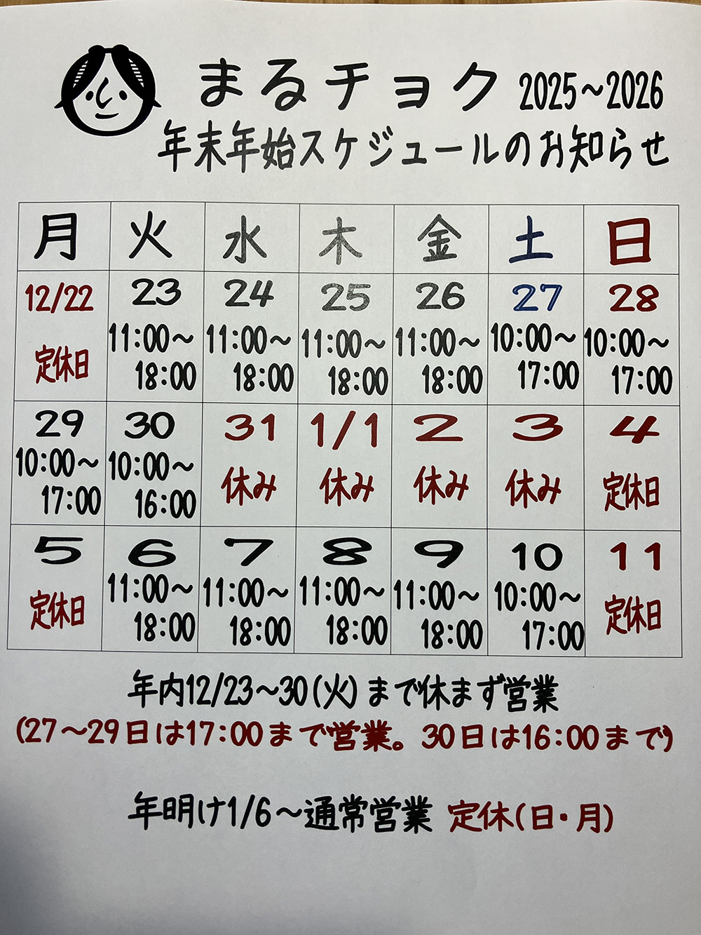 まるチョクの年末年始スケジュールを掲載いたしました。